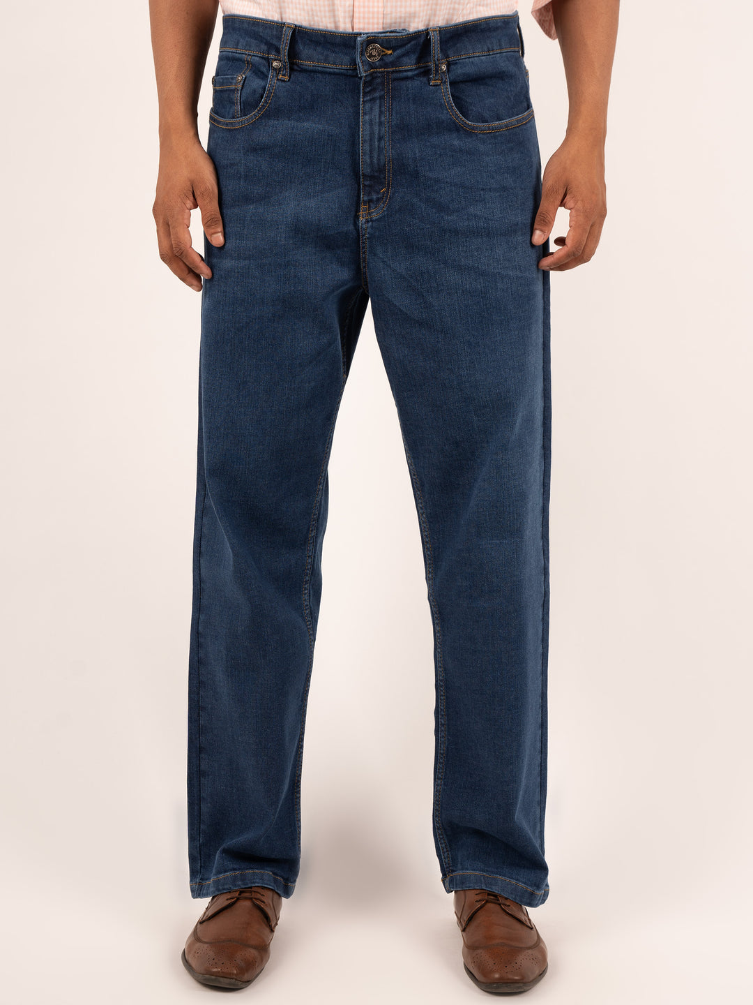Men's Steel Blue Regular Fit Stretch Denim Jeans
