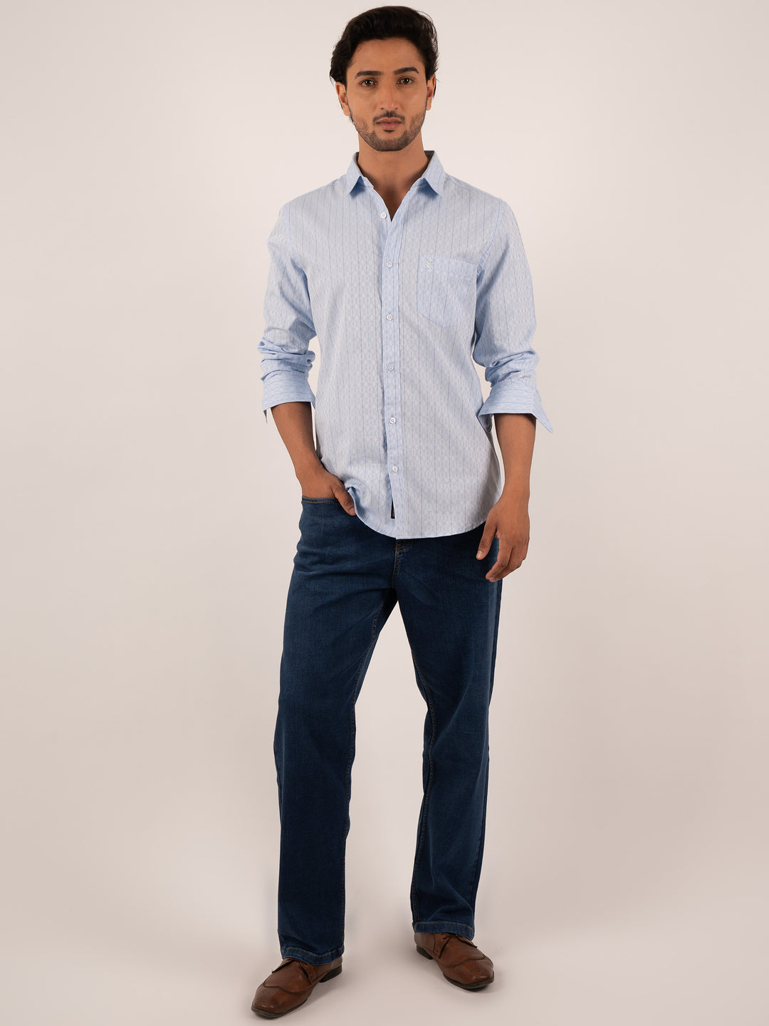 Men’s Regular Fit Sky Blue Cotton Shirt with Subtle Print