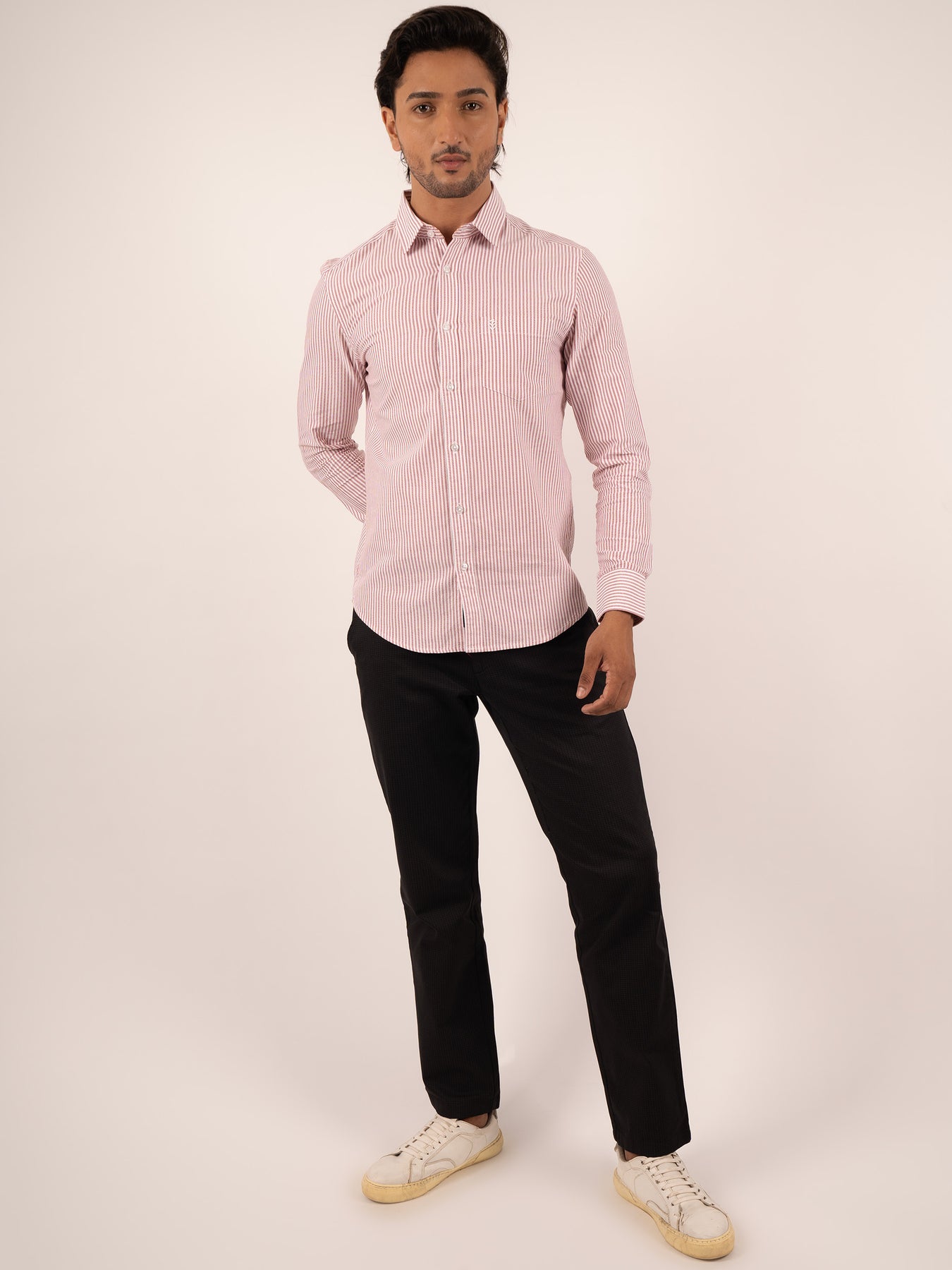 A wardrobe staple in a bold crimson hue, this shirt is tailored from smooth cotton for a crisp yet breathable feel. Featuring a clean button‑down front and a neatly finished single pocket, it brings a refined edge to weekday formals while adding a pop of colour to weekend ensembles.