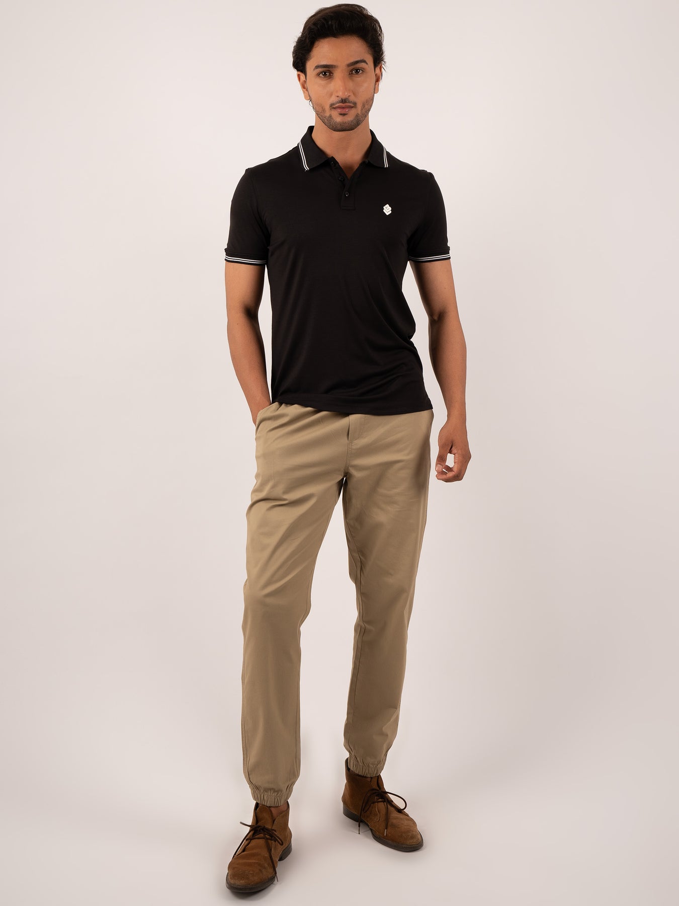 Elevate your casual style with this sleek white polo T-shirt featuring a classic collar and subtle contrast tipping on the collar and sleeve cuffs. Crafted for comfort and style, it’s perfect for both casual outings and smart-casual events